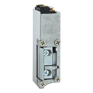 Напруга складає 6-12В постійного струму. Має язичок спеціальної радіальної форми, яка при відкриванні зміщується в глибину защіпки. За рахунок цього виріз в рамі під нього потрібен буде мінімальний. Язичок регулюється відносно корпусу з діапазоном 5 мм. Зворотня планка докуповується окремо в залежності від Ваших потреб.