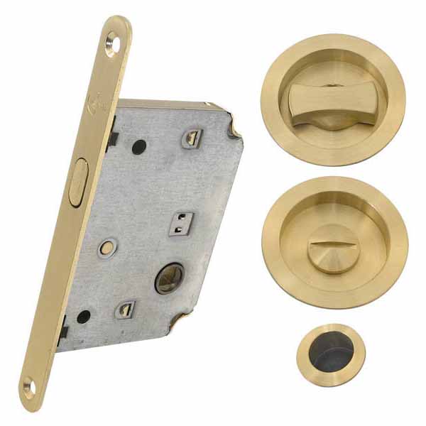 Опис Комплект замка для розсувної системи RDA 4120 (кругла ручка) SB матова латунь