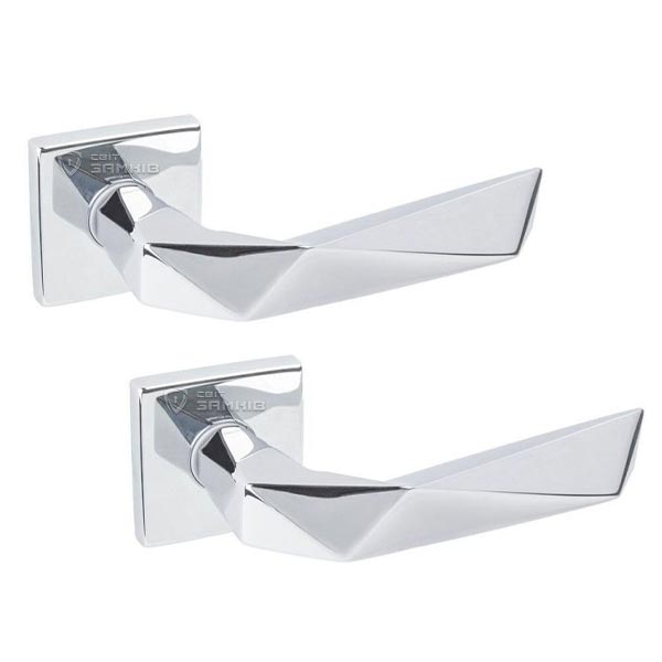Італійські ручки на розеті DND by MARTINELLI. Виготовляються із латуні за сучасними стандартами якості, завдяки чому можуть встановлюватися і на міжкімнатні, і на вхідні двері. Ручки цієї торгової марки розробляються в тісній співпраці з відомими італійськими дизайнерами в сфері дверної фурнітури. Сучасний колір – хром – чудово підійде для інтер’єру з яскравими світлими відтінками. Захист кольорового відтінку від пошкоджень та подряпин забезпечує спеціальний метод багатошарового гальванічного покриття. Завдяки цьому ручки будуть виглядати як нові протягом 120 місяців. Ручки можна встановлювати як на праві так і на ліві двері. Сучасний дизайн в стилі хай-тек чудово підійде для дверного полотна з суворими гострими лініями.