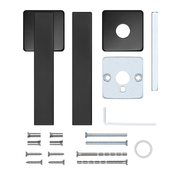 Ручки з квадратною розетою чеського виробника ROSTEX зазвичай встановлюють в міжкімнатні та вхідні двері приміщень приватного та громадського призначення. Виготовлені з нержавіючої сталі, що дає можливість їх використання при різних погодних умовах. Чорний колір максимально органічно підійде для сучасного high-tech чи лофт-дизайну. Завдяки якісній поворотній пружині, ручки працюють без зайвих зусиль та служитимуть довгий час. Отвори для кріплення прикриваються розетою. За необхідності до ручок можна придбати вороток чи накладки на серцевину в цьому ж кольорі та з відповідною формою розети.