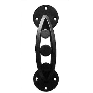 Кована ручка скоба української торгової марки ДНІПРО. Представляє собою дверну фурнітуру з вишуканим дизайном за бюджетну ціну. Переважно встановлюється на хвіртку або ворота з дерева та металу. Виготовляється із алюмінієвого сплаву. Ручки з такого матеріалу не характеризуються високим рівнем міцності, але вони легкі та приємні на дотик. Така модель має компактні розміри, нею легко та зручно користуватися. Класичний кований дизайн чудово доповнить хвіртку або ворота з різноманітними орнаментами та візерунками. Основним технічним критерієм при виборі є довжина ручки та відстань між кріпленнями. Ця модель монтується за допомогою шурупів або саморізів. Може використовуватися із звичайним (фалевим) ригелем, але за умови якщо він керується серцевиною.