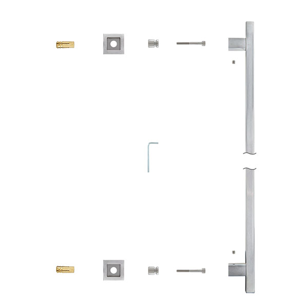Ручка скоба чеського виробництва ROSTEX. Ідеальний вибір для інтер'єру в сучасному стилі. Щоб відчинити двері достатньо просто потягнути за скобу. Такі ручки чудово підійдуть для приміщень з великим трафіком людей, наприклад, в офіс, магазин, кафе чи ресторан. Через відсутність пружинного механізму термін експлуатації в декілька разів більший, ніж у фурнітури нажимного типу. Основним технічним критерієм при виборі є довжина ручки та відстань між кріпленнями. Важливо щоб при встановленні скоби, кріплення розмістились вище та нижче замка. Через дверне полотно робиться наскрізний отвір, куди вставляється спеціальна шпилька з різьбою. На неї накручується ручка і фіксується гужонами на нижній і верхній розеті. При використанні цієї ручки на вхідних дверях радимо доукомплектовувати її протектором ROSTEX QUADRUM в обробці нержавіюча сталь матова для захисту серцевини. Найчастіше використовується із замком “бочкою”. Якщо ж на дверях встановлено звичайний механізм замка під язичок то зсередини можна поставити нажимну ручку для вільного виходу з приміщення.