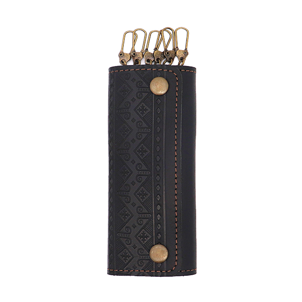 Ключниця СМУЖКА (вишивка) шкіряна 14 см чорна
