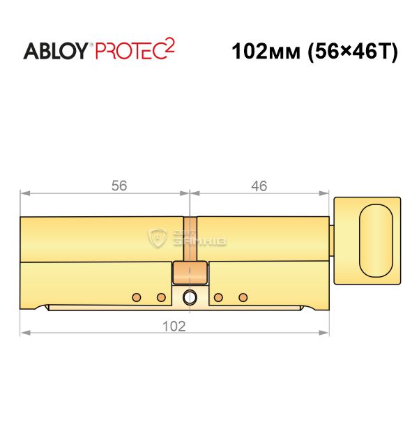 Циліндр ABLOY Protec2 102T (56*46T) латунь полірована