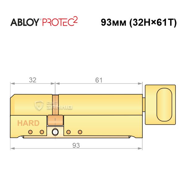Купити циліндр ABLOY Protec2 93T (32H*61T) (H - гартована сторона) латунь полірована в роздріб і гуртом можна на нашому сайті.