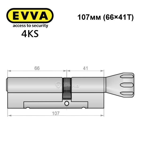 Купити циліндр EVVA 4KS 107Т (66*41T) нікель сатин 5 ключів в роздріб і гуртом можна на нашому сайті.