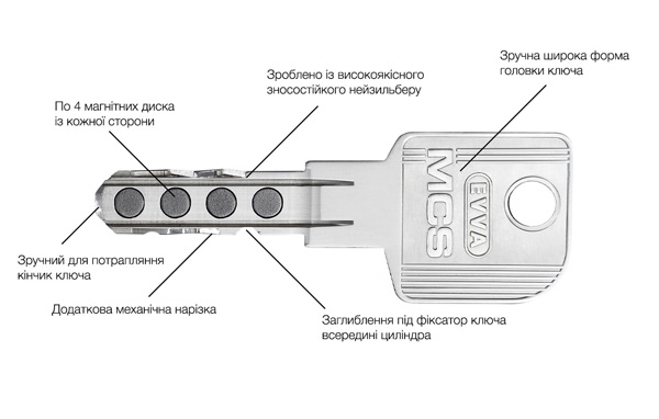 Магнітний ключ виключає ризики створення копії зловмисниками.