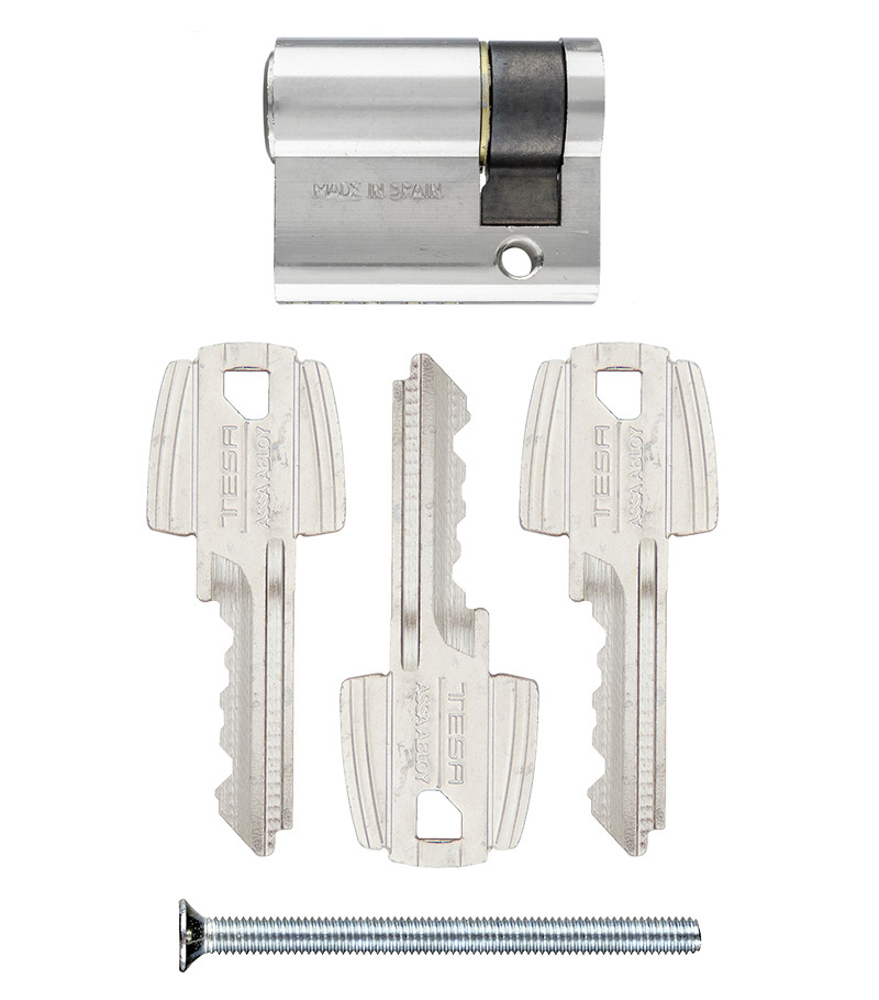 Опис Циліндр половинка TESA TE5 40 (30*10) нікель сатин 3 ключа
