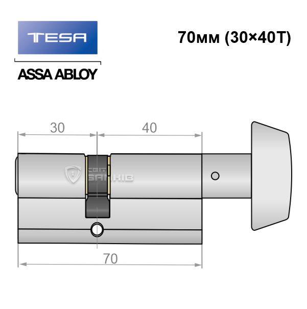 Циліндр TESA TE5 70T (30*40T) нікель сатин 5 ключів
