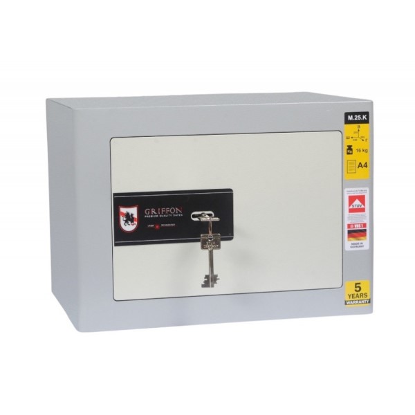 Український виробник ПАРИТЕТ-К є одним із найкращих та найпрогресивніших в сфері проектування та виготовлення сейфів будь-якої категорії. Дана модель GRIFFON M.25.K володіє компактними розмірами і при цьому досить містка для побутових потреб. Її без проблем можна розмістити всередині меблів. Для надійності кріплення передбачені отвори для анкерних болтів. Це дозволить закріпити сейф до підлоги або стіни. При цьому він сертифікований за класом зламостійкості S1. Це означає, що сейф добре протистоїть вандальному зламу.