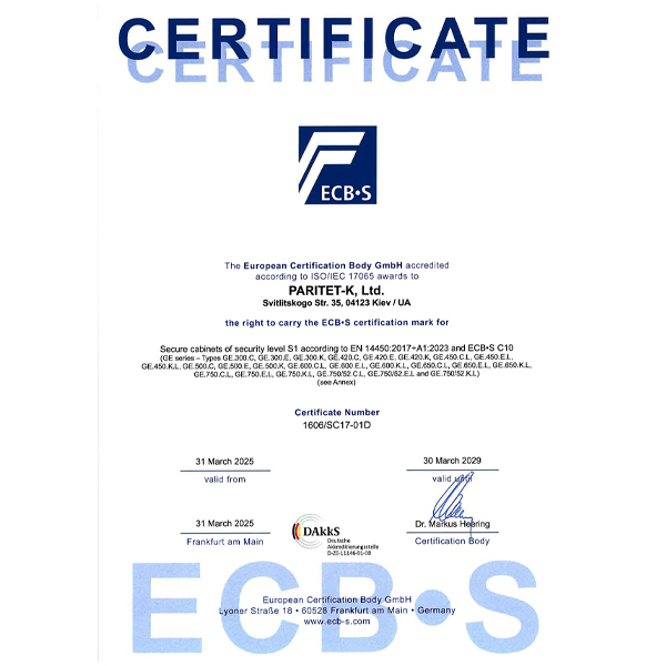 | Клас зламостійкості | S1 клас (Європейська сертифікація) | |
