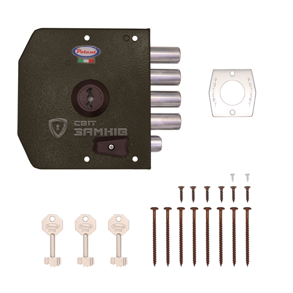 Опис Замок накладний POTENT 440 (BS60мм) лівий 3 ключа