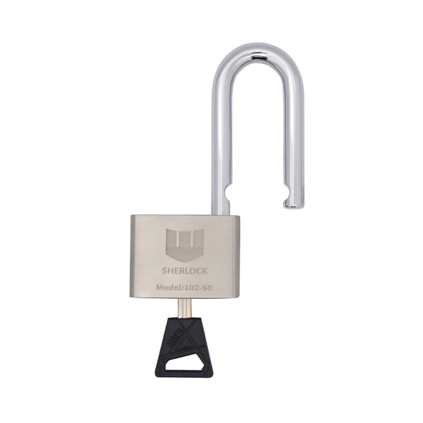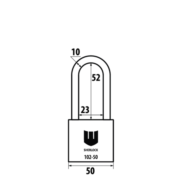 SHERLOCK 102-50 — чудовий варіант навісного замка для вуличного використання. Литий корпус виготовлений з нержавіючої сталі, тому стійкий до механічних пошкоджень та негоди.