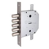 Замки даного типу відзначаються своєю довговічністю і зносостійкістю. Матеріали та конструкція відповідають міжнародним стандартам якості. Підходить для важких броньованих та гаражних дверей. Механізм оснащений п'ятьма ригелями для більш надійного запирання дверей.