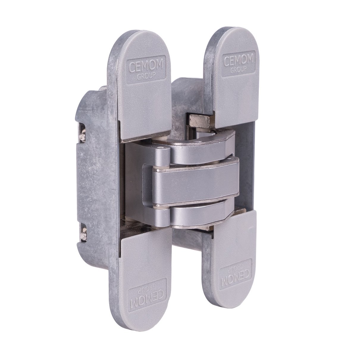 Французька ТМ CEMOM вже більше 40-ка років є одним із найвідоміших європейських виробників дверної фурнітури. Якість, надійність, практичність - ось причини такого вибору споживачів. Дана модель CEMOM Estetic 80A - це петля прихованого монтажу. На практиці це буквально означає, що вона захована всередину дверного полотна та не виступає за його площину. З точки зору безпеки подібне виконання є найкращим, адже такий завіс не можна вибити або спилити. CEMOM Estetic 80A виготовляється із цинкового сплаву ZAMAK та призначений для дерев’яних дверних полотен товщиною від 40 мм та шириною від 700 до 1000 мм. Відстань між рамкою і дверною частиною (19 мм) забезпечує плавне відкривання дверей на 180º (за відсутності лиштви). Це означає, що у повному відкритому стані вони не будуть заважати, займаючи житловий простір. Дана модель регулюється в 3-х вимірах: вертикаль, горизонталь, притиск. Таким чином, можна добитись максимальної точності та відсутності будь-яких щілин. Завдяки присутності в конструкції втулок ковзання не вимагає мастила. Важливим аспектом при підборі завіс являються габарити дверей. Знаючи їх, Ви дуже просто визначитесь із кількістю необхідних петель з розрахунку того, що навантаження повинно бути не більше 80 кг на 2 петлі при ширині полотна 900 мм і висоті мінімум 2000 мм. CEMOM Estetic 80A виконаний в мінімалістичному стилі. Регулювальні гвинти приховуються спеціальними ковпачками, тому їх не видно навіть при відкритих дверях. Це все дає великий простір для цікавих дизайнерських втілень. В кольорі “матовий хром” буде вдалим рішенням на дверях світлих відтінків - насамперед тепло-сірих, бежевих. Виробник заявляє про мінімум 200 000 циклів відкривання/закривання.